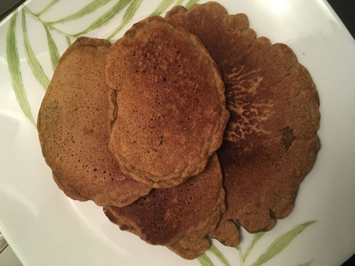 Add pre-cooked veggies to your blender and puree. Preheat the frying pan with some coconut oil over a medium heat on stove burner. Combine all ingredients into a mixing pan and stir well. Make sure the coconut oil is evenly distributed over the entire frying pan. Spoon batter into frying pan. When small bubbles are appearing through the cooking pancake test to see if it is flipable. Cook both sides of the pancakes to a nice golden brown.