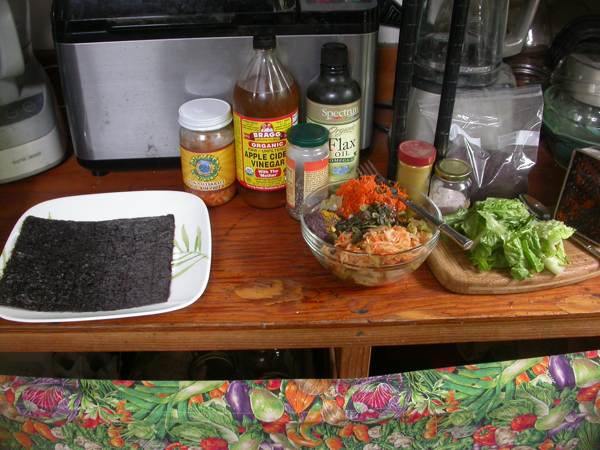 The green carrot roll is generally meant to be eaten fresh but still very good through the next day. You may consider using a food processor to shred carrots if making several rolls. I like to wrap my green carrot rolls in unbleached parchment paper to travel and store overnight.